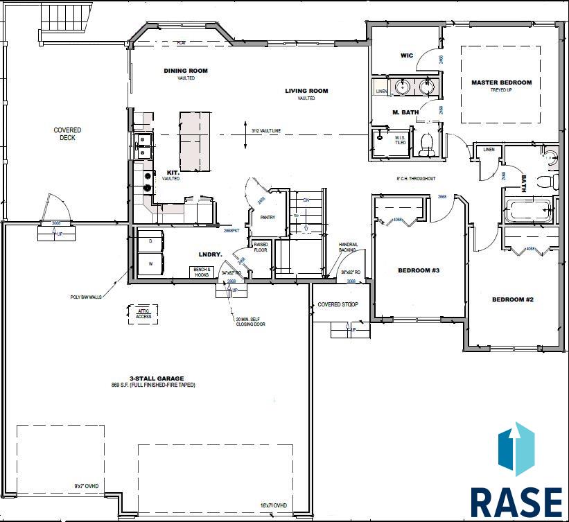 Pine Knoll on the west side of Sioux Falls offers family friendly neighborhoods, quick access to schools, and shopping while still being close to nature and park areas. This spectacular ranch floor plan has 3 beds on the main. This is an open floor plan great space for entertaining! Walking in from the finished garage there is a convenient main floor laundry room with a coat closet. Large kitchen with island, quartz countertops and a walk-in pantry. The living area is open with sliders to an extra-large 13x19 deck with a service door from the garage. The garage is finished through one coat of fire tape. The main floor is finished with 3 beds on the main, the master bedroom has a WIC, and a master bath with dual sinks, linen cabinet and tiled walk-in shower. The other two bedrooms have large windows for great natural light, a main bath and linen closet. Basement has the potential for two additional bedrooms, full bathroom & an oversized family room.