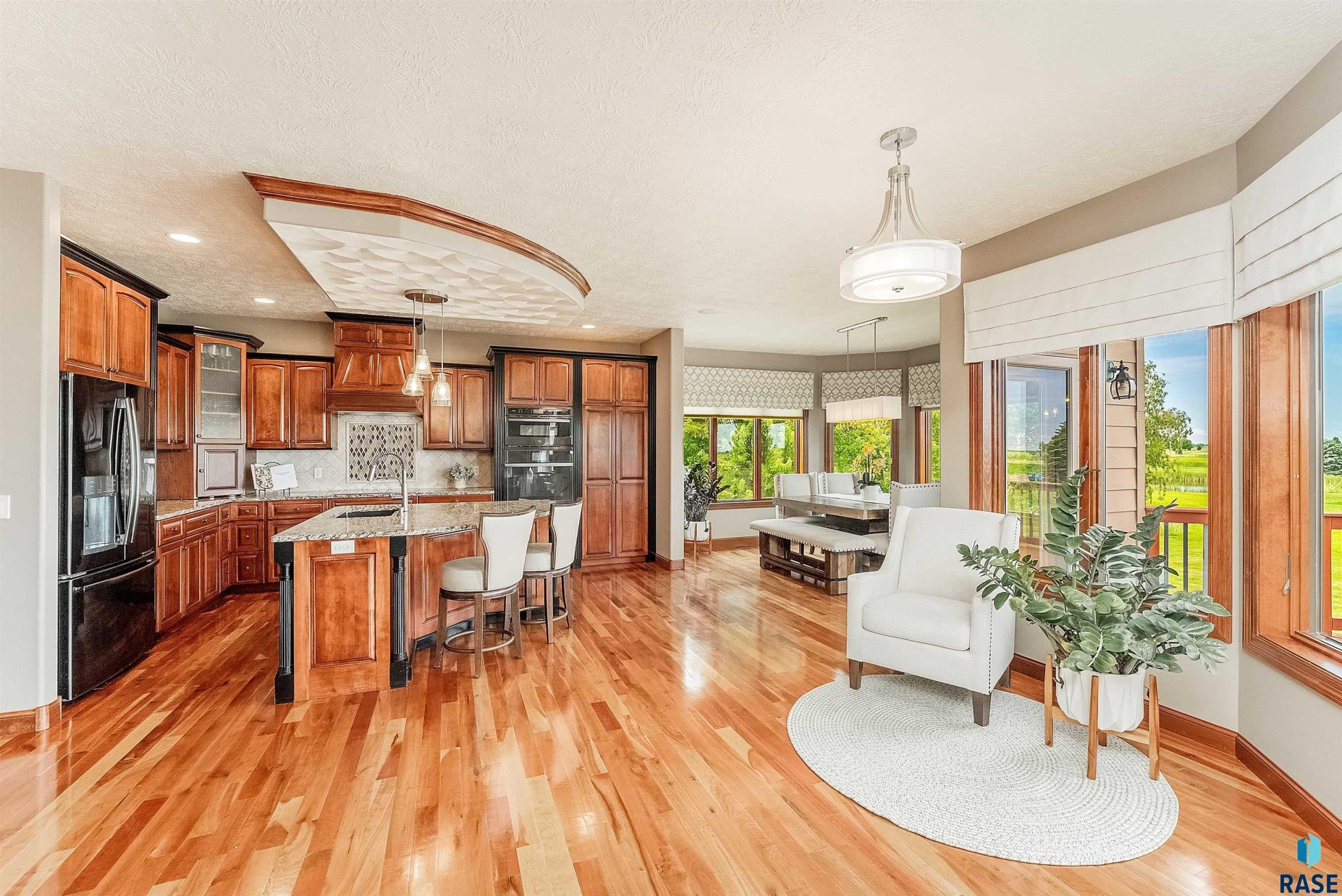 Seller will consider lease-purchase offers! Executive Ranch Walk-Out in South Sioux Falls! Parade of Homes WINNER with new geothermal in 2023! Open floor plan, gourmet kitchen, and a massive primary suite with deck views of Bakker Crossing Pond & Golf Course. Sun-filled main floor with custom ceiling details. Walk-out lower level features bedrooms with big closets, wet bar, and exercise room. Oversized heated 4-stall garage with epoxy floors and south-facing driveway. A rare blend of luxury, efficiency & location!